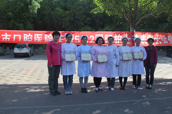 5月13日下午,在醫(yī)院工會(huì)的大力支持下,護(hù)理部、醫(yī)院工會(huì)在錦州市北普陀山開(kāi)展了“錦州市口腔醫(yī)院護(hù)士表彰大會(huì)暨戶外拓展活動(dòng)”。首先進(jìn)行的對(duì)2015年度的“優(yōu)秀護(hù)理工作者、優(yōu)秀護(hù)士、優(yōu)秀護(hù)士長(zhǎng)、優(yōu)秀護(hù)理團(tuán)隊(duì)”的表彰,通過(guò)對(duì)先進(jìn)的表彰,進(jìn)一步激發(fā)護(hù)士的工作熱情和干勁,鼓舞了士氣,增強(qiáng)了護(hù)士的自豪感,田院長(zhǎng)親自為獲得優(yōu)秀護(hù)理團(tuán)隊(duì)的口腔內(nèi)科頒發(fā)獎(jiǎng)狀,口腔內(nèi)科兩位科主任及全體護(hù)士也共同見(jiàn)證了這一光榮的時(shí)刻。