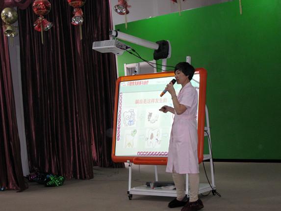 在活動(dòng)中醫(yī)生利用新穎富有童趣的圖片、生動(dòng)形象的示范,讓幼兒了解如何預(yù)防蛀牙,讓孩子清晰飯后漱口、早、晚刷牙、少吃零食等是保護(hù)牙齒的關(guān)鍵。講座活潑形象,并就如何正確刷牙與小朋友們互動(dòng)。講座后,家長(zhǎng)們紛紛上前就孩子的口腔問題進(jìn)行咨詢。醫(yī)生仔細(xì)地檢查每一個(gè)孩子的口腔狀況,了解孩子平常的口腔衛(wèi)生以及飲食情況,同時(shí)認(rèn)真解答了家長(zhǎng)對(duì)孩子齲齒、牙齒不齊等口腔問題的疑惑。