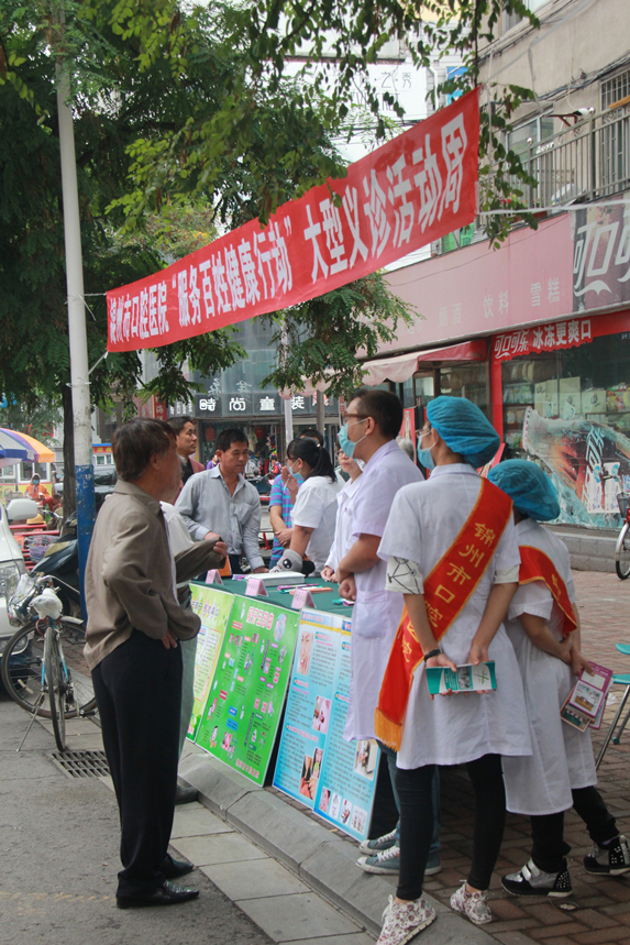 應(yīng)國(guó)家衛(wèi)生計(jì)生委、國(guó)家中醫(yī)藥管理局、總后勤部衛(wèi)生部《關(guān)于聯(lián)合開(kāi)展2015年“服務(wù)百姓健康行動(dòng)”全國(guó)大型義診活動(dòng)周的通知》的要求,按照市衛(wèi)生計(jì)生委統(tǒng)一部署,9月23日,錦州市口腔醫(yī)院在醫(yī)院開(kāi)展“服務(wù)百姓健康行動(dòng)”大型義診活動(dòng)周主題宣傳活動(dòng)。